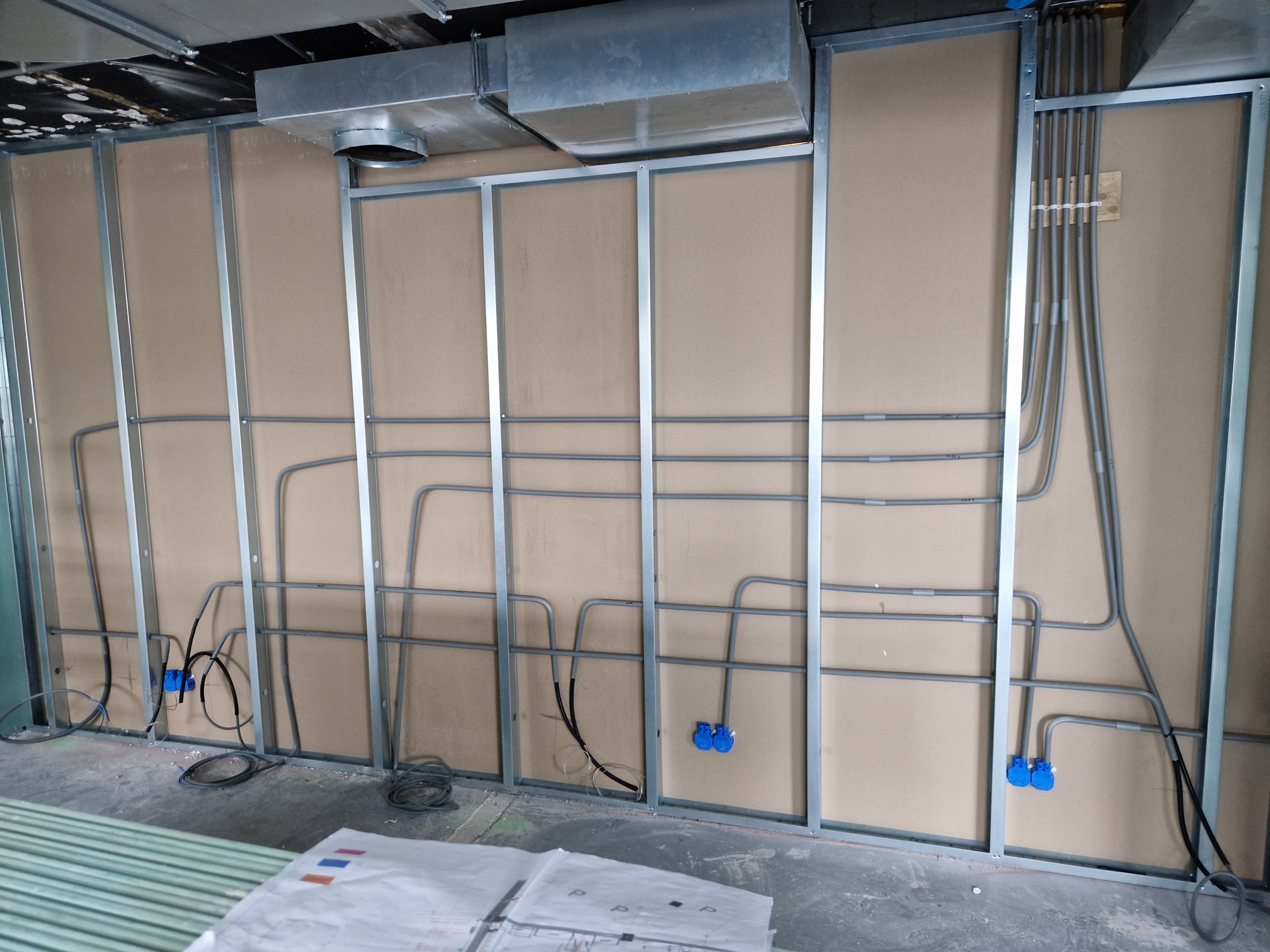 Nieuwbouwinstallaties: aanleg van alle elektra in kantoren en bedrijfsruimtes, van bedrading tot verlichting en aansluitpunten.